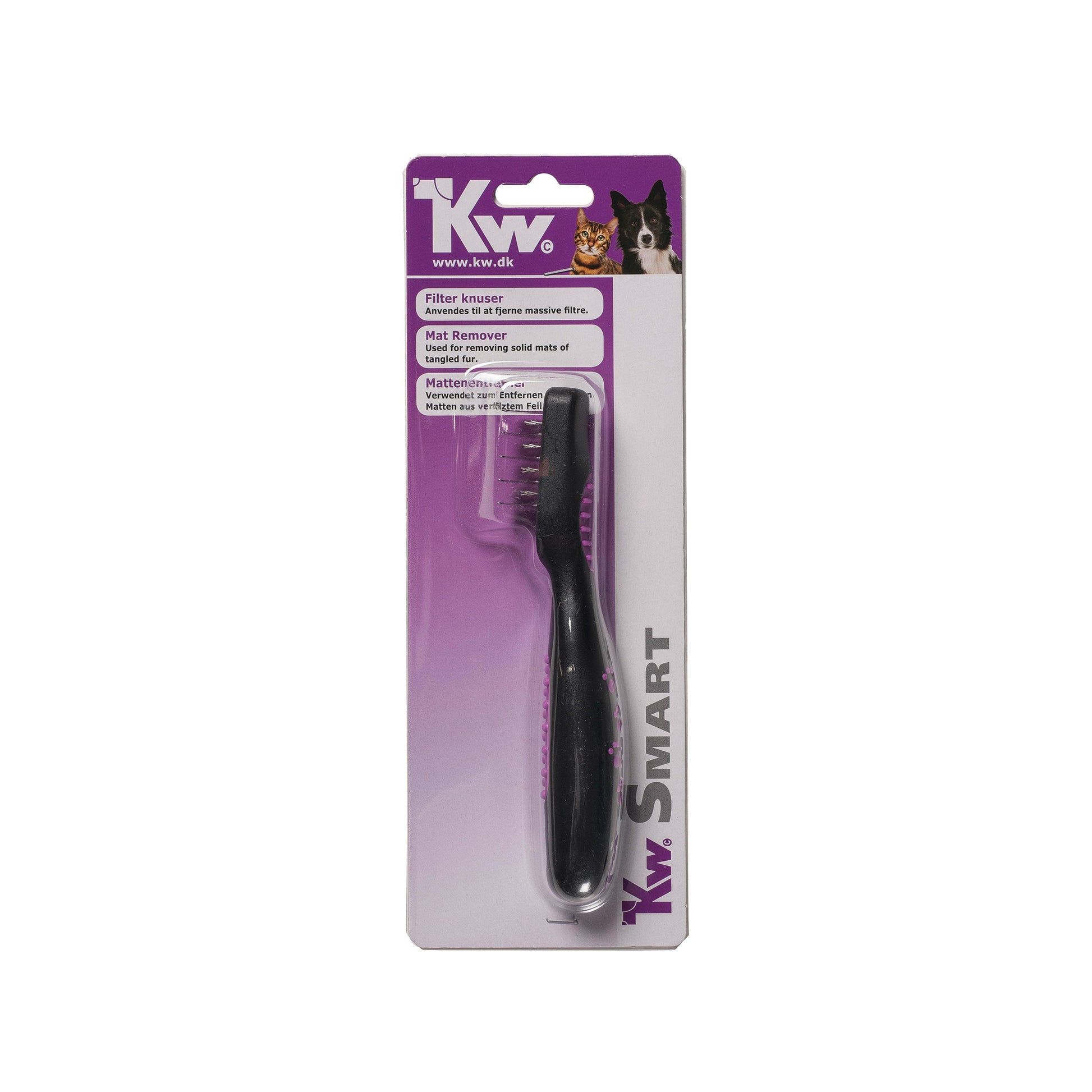 KW Smart Tovdelningskniv är ett praktiskt verktyg som underlättar utredning av lösare tovor och hjälper till att ta bort överskott av underull på ett skonsamt sätt. De flera bladen gör det enklare att dela upp tovor i mindre delar, vilket minskar behovet av att klippa bort större mängder päls.